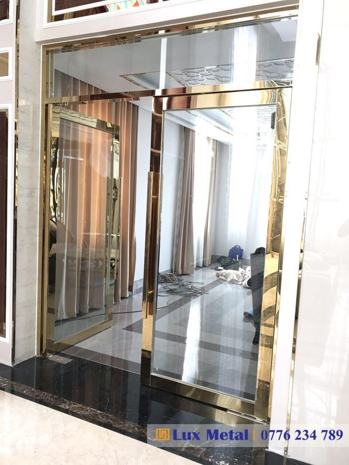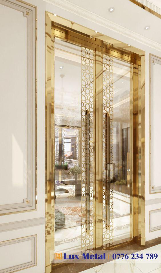 Cửa inox mạ vàng là dòng cửa cao cấp được gia công từ inox chất lượng cao, bề mặt xử lý mạ vàng PVD giúp tăng tính thẩm mỹ và độ bền cho sản phẩm. Với sắc vàng sang trọng, tinh tế, cửa inox mạ vàng không chỉ đóng vai trò bảo vệ mà còn trở thành điểm nhấn nổi bật cho toàn bộ không gian.