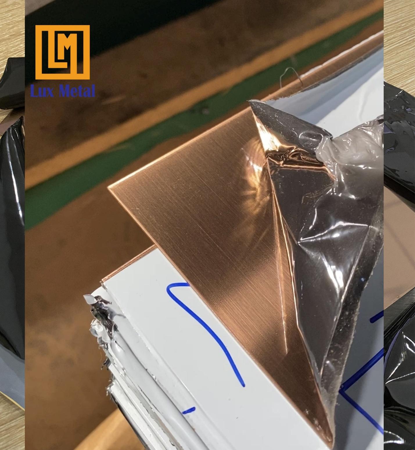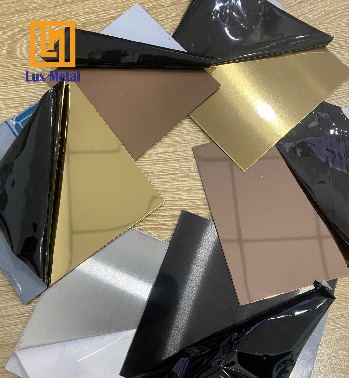 Cụ thể, inox nền (thường là inox 304 hoặc inox 201) sẽ được làm phẳng, đánh xước hoặc đánh gương tùy yêu cầu, sau đó đưa vào buồng mạ để tạo màu như vàng, đen, hồng đồng, champagne, titan…. Tấm inox màu vì thế vừa mang tính thẩm mỹ cao, vừa ổn định khi thi công, dễ vệ sinh và phù hợp cho nhiều hạng mục như ốp tường, thang máy, vách ngăn, quầy lễ tân, bảng hiệu và trang trí nội thất cao cấp.