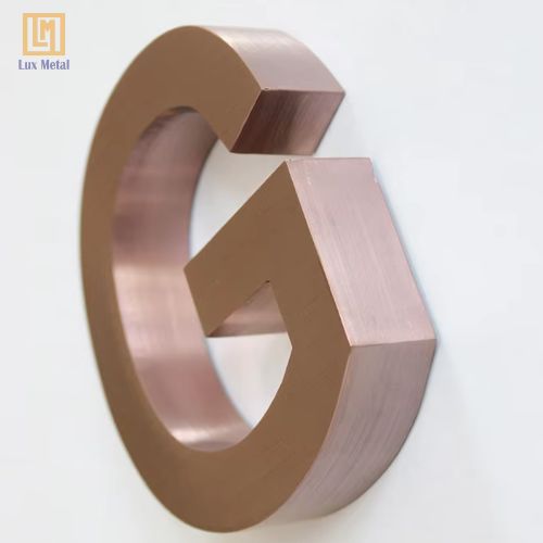 - Bảng hiệu và logo: Sử dụng để làm chữ nổi, logo, slogan trang trí cho văn phòng, phòng hội nghị, và các khu vực tiếp khách. Màu vàng hồng sang trọng giúp nâng tầm thương hiệu và tạo ấn tượng mạnh với khách hàng.