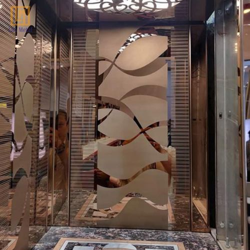 - Tấm inox hoa văn vàng hồng: Bề mặt được khắc hoa văn tinh xảo, tạo điểm nhấn nghệ thuật.
