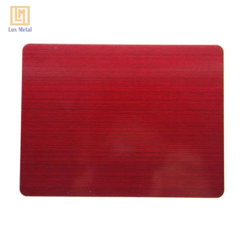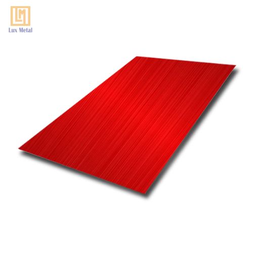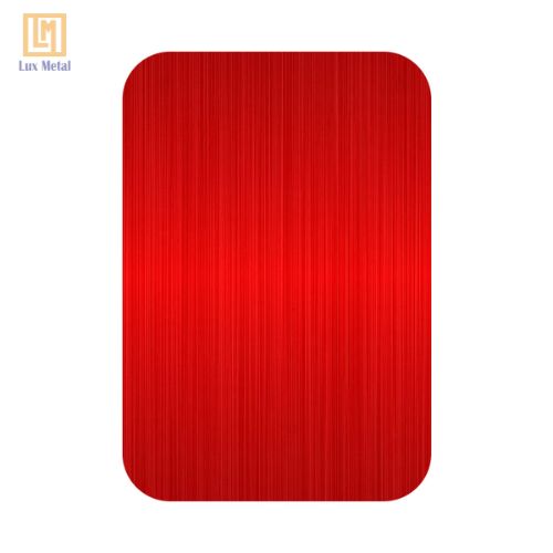 Tấm inox xước đỏ là một loại vật liệu cao cấp được chế tạo từ thép không gỉ, nổi bật với bề mặt xước tinh tế và màu sắc đỏ đặc trưng. Màu sắc này được tạo ra nhờ công nghệ mạ hiện đại, như mạ chân không PVD, giúp đảm bảo độ bền màu và khả năng chống trầy xước hiệu quả.
