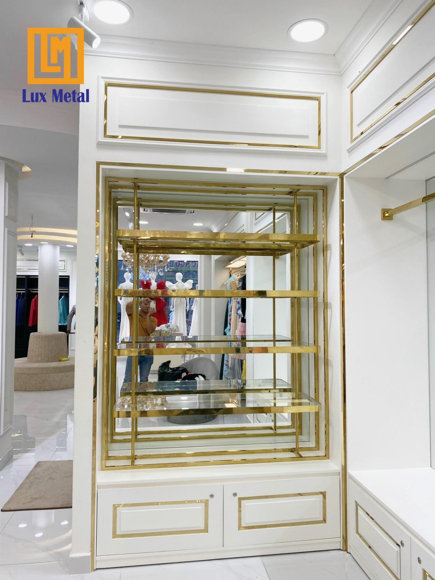 Linh hoạt về kích thước, kiểu dáng, màu mạ, bố cục ngăn kệ, phù hợp với từng phong cách showroom và nhận diện thương hiệu. - Dễ vệ sinh, bảo dưỡng